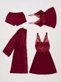 Bordo Saten 4'lü Çeyiz Seti