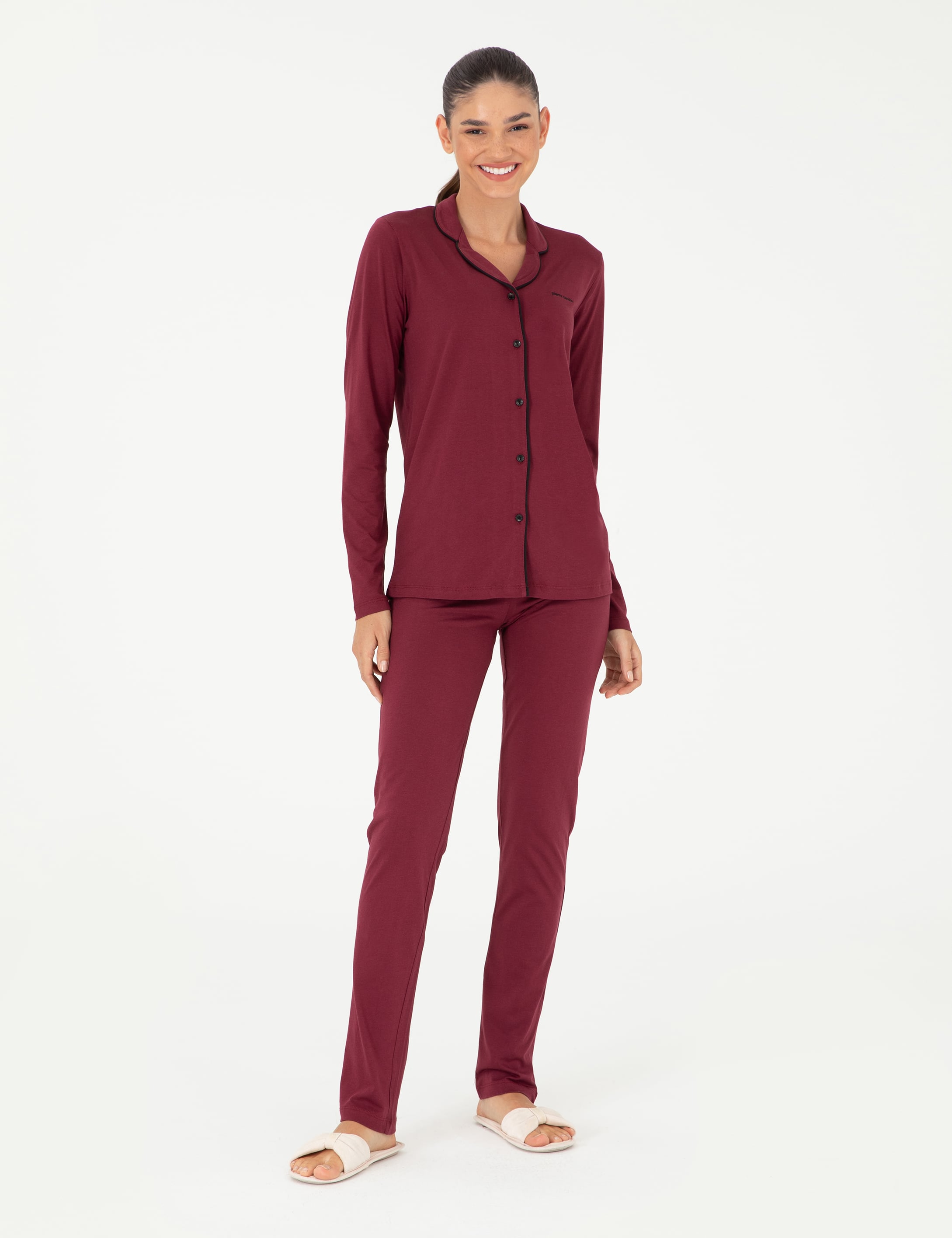 Günün yorgunluğunu atmak ve rahat bir gece geçirmek isteyenler için tasarlanan pijama takımı, sıcak bordo tonuyla huzurlu bir ortam sunuyor. İnce detayları ve yumuşak dokusuyla evde geçirilen anların vazgeçilmez parçası olacak. Böylece rahatlığını ve şıklığını her an hissedeceksiniz.
