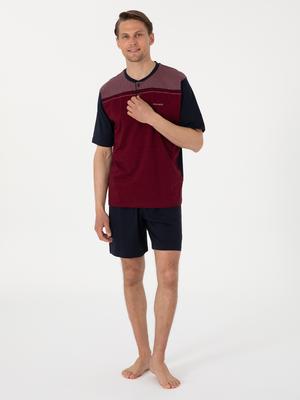 Bordo Kısakol 3'lü Jakarlı Pijama Takımı