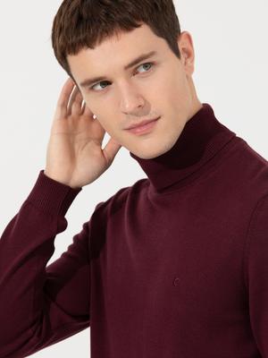 Bordo Slim Fit Balıkçı Yaka Basic Triko Kazak