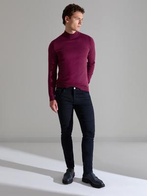Bordo Slim Fit Yarım Balıkçı Yaka Basic Triko Kazak
