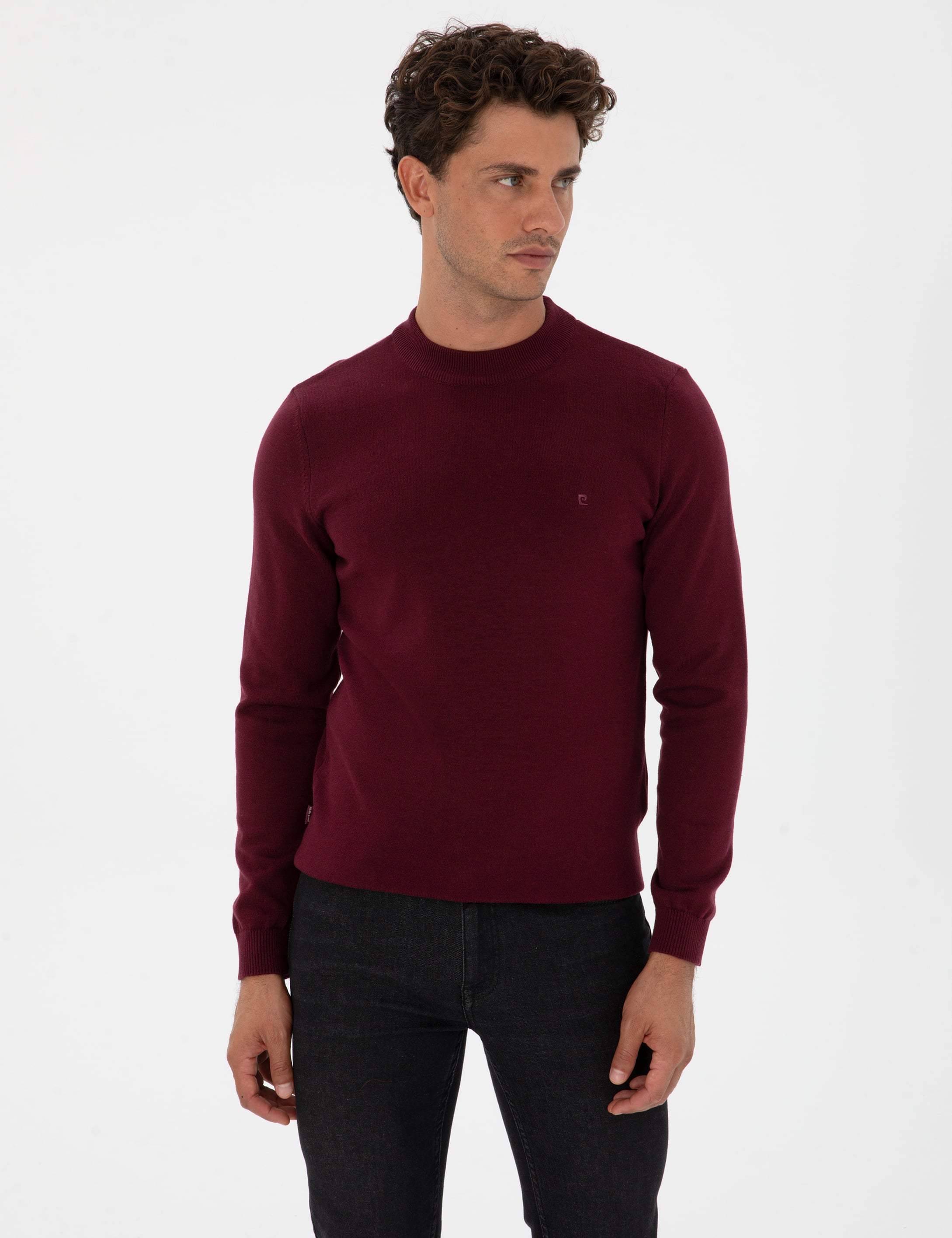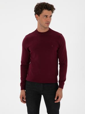 Bordo Slim Fit Çeyrek Yaka Basic Triko Kazak