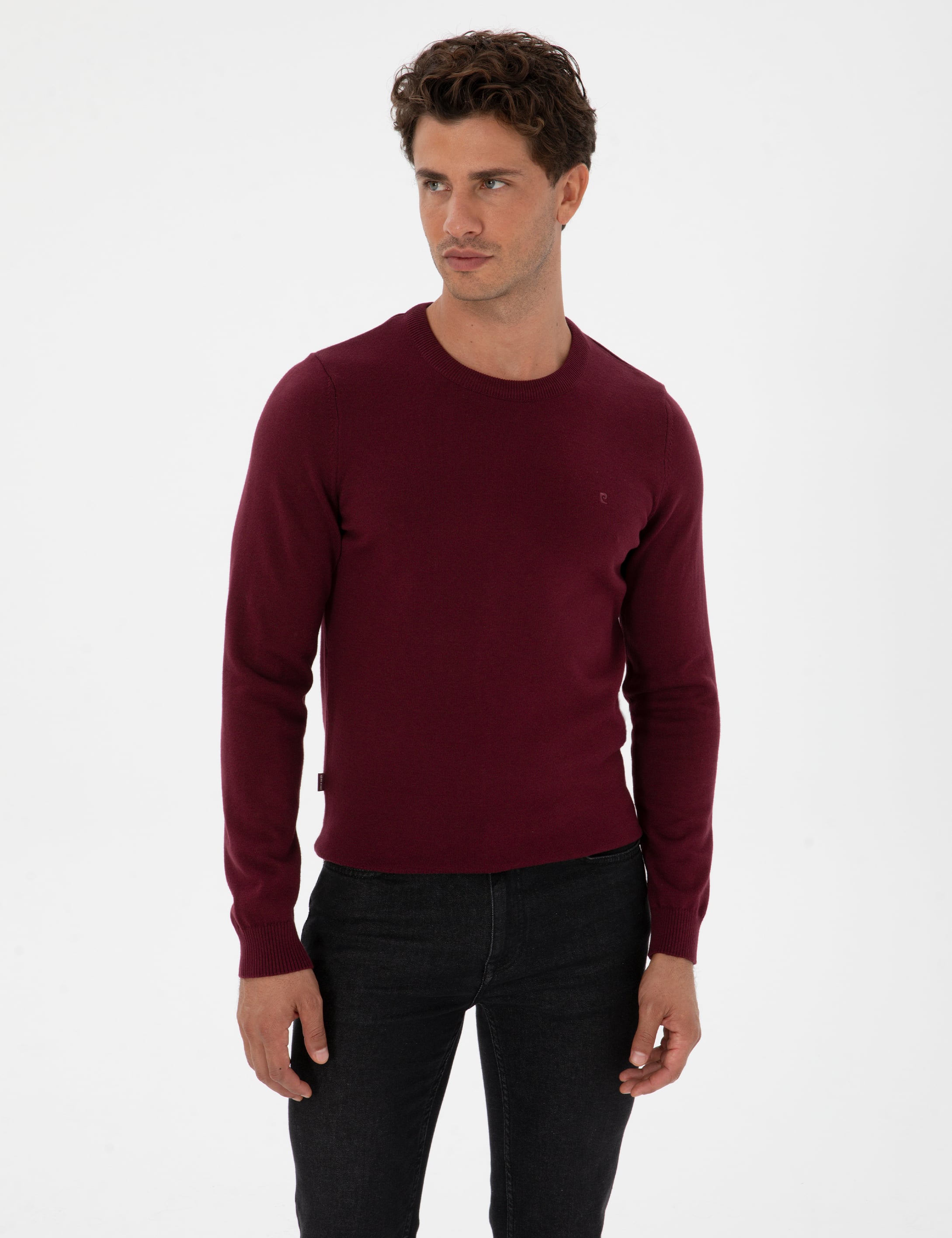 Bordo Slim Fit Bisiklet Yaka Basic Triko Kazak