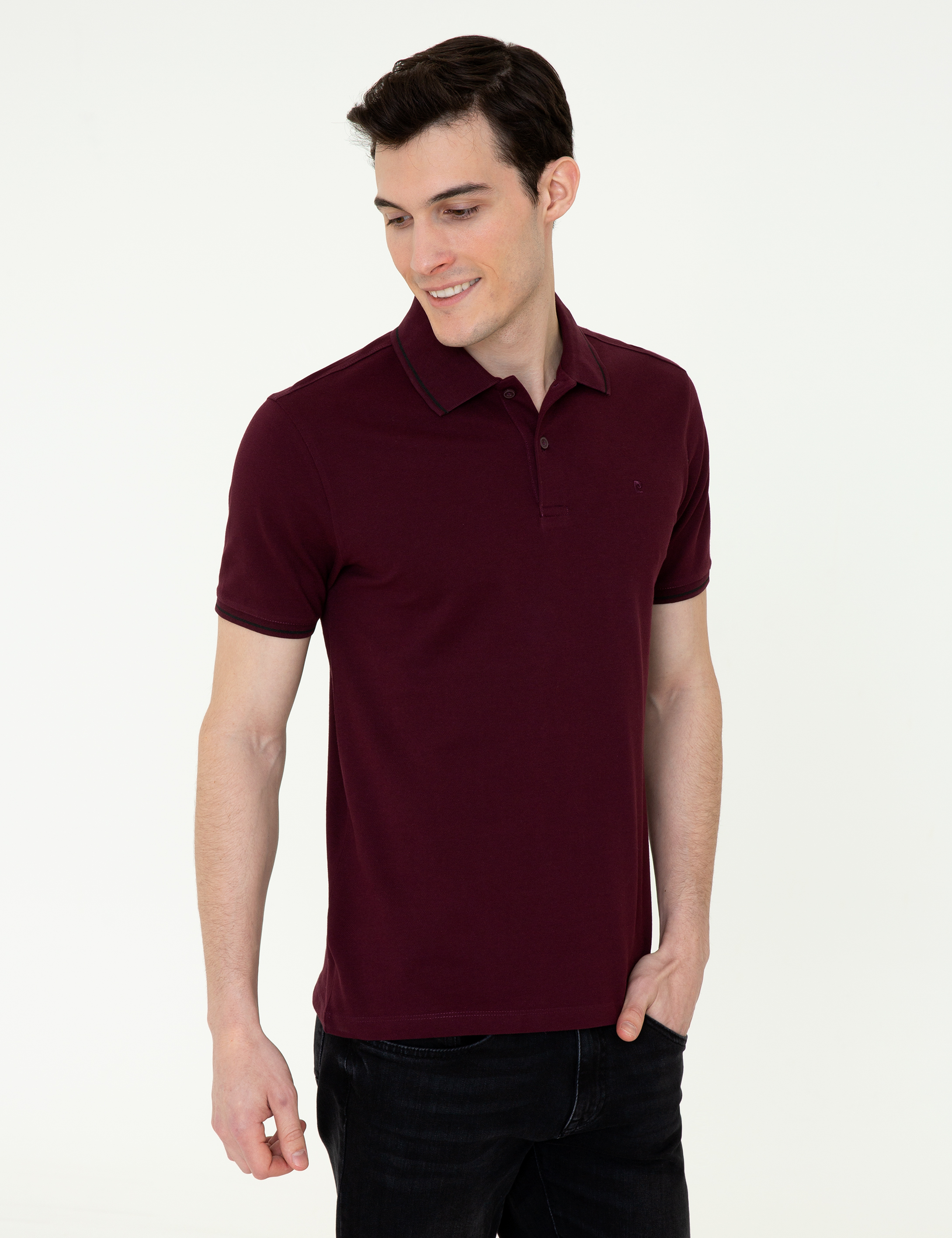 Bordo Slim Fit Polo Yaka Basic Tişört