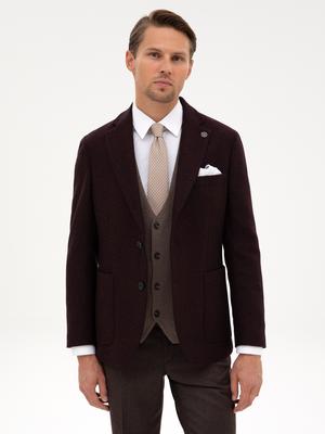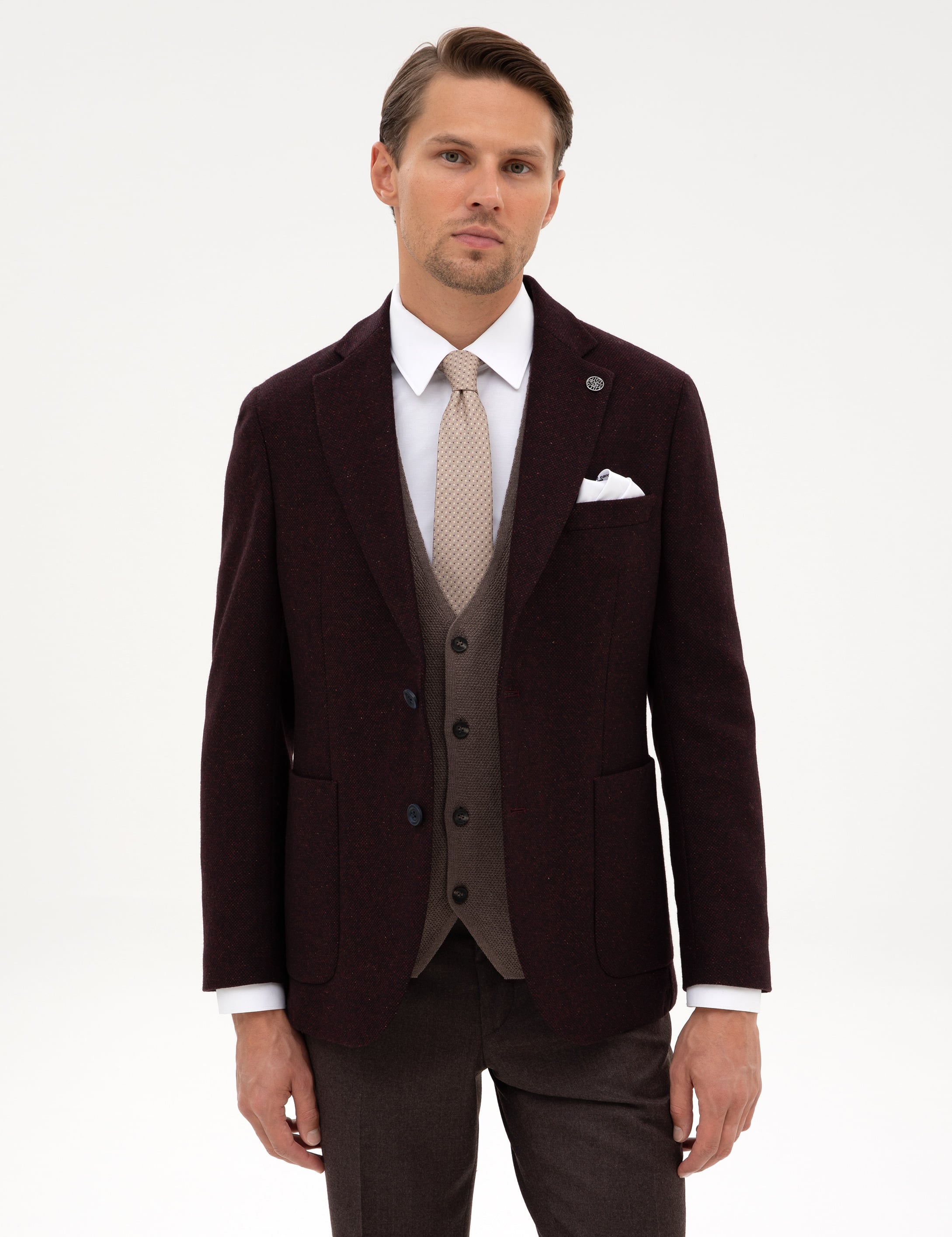 Bordo Slim Fit Yün İpek Karışımlı Ceket