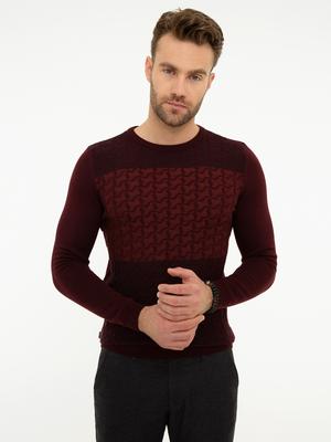- Bordo Slim Fit Bisiklet Yaka Triko Kazak