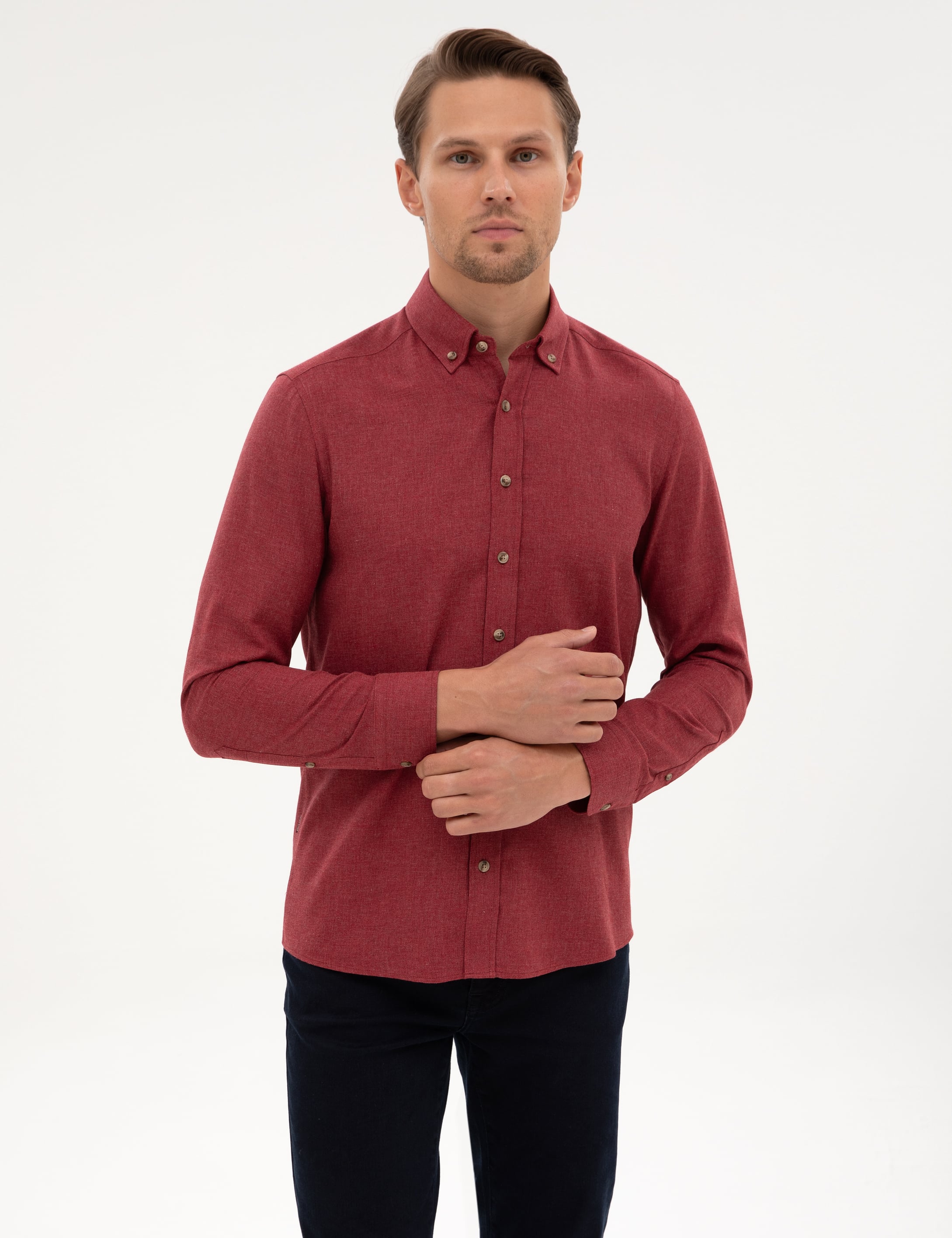 Bordo Flanel Dokulu Slim Fit Uzun Kollu Gömlek