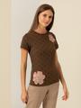 Desenli camel renkli tişört, dikkat çekici ve şık bir stil arayanlar için ideal bir parça olarak öne çıkmaktadır. Kaliteli kumaşı sayesinde esnek, hafif ve rahat bir kullanım sunmaktadır.