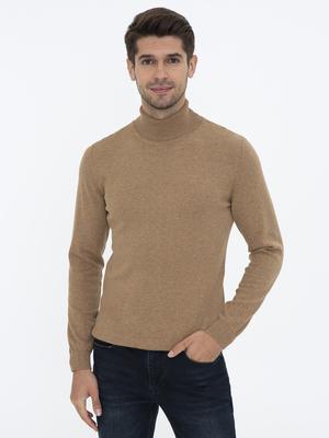 Camel Melanj Slim Fit Balıkçı Yaka Basic Triko Kazak
