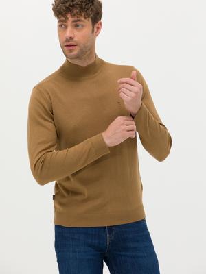 Camel Melanj Slim Fit Yarım Balıkçı Yaka Basic Triko Kazak
