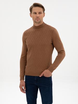 - Camel Melanj Slim Fit Yarım Balıkçı Yaka Triko Kazak