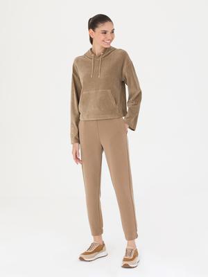Camel rengi, zamansız bir görünüm sunarken, vücuda tam oturan regular fit kesimi ile hem şık hem de rahat bir stil sunmaktadır. Yan cep detayları sayesinde kullanışlılık da sunmaktadır. Cepsiz modellerden farklı olarak, hem estetik hem de işlevsel bir tasarım sunmaktadır. Yumuşak ve esnek kumaşı, özellikle spor yaparken veya evde dinlenirken ekstra hareket özgürlüğü sağlamaktadır. Dikiş detayları ve paça kısmındaki lastikli yapı, ürünün sportif stilini desteklemektedir.