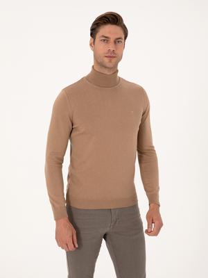 Camel Slim Fit Balıkçı Yaka Basic Triko Kazak