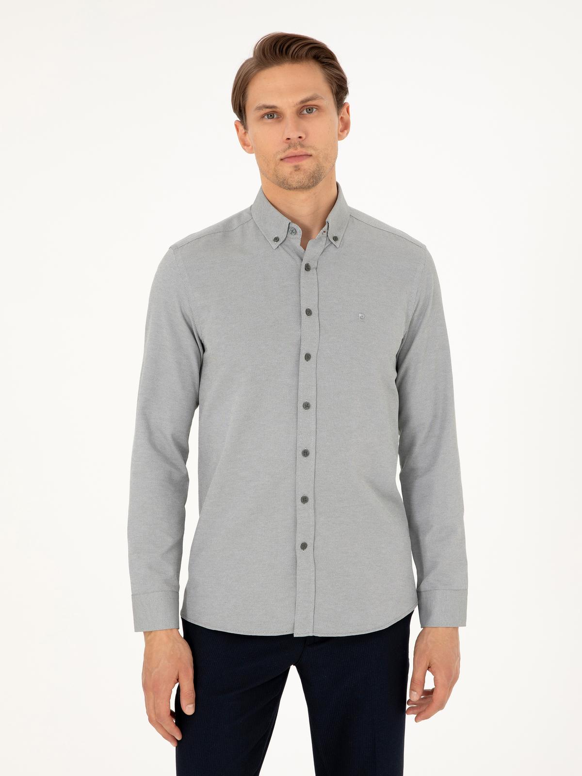 Haki Oxford Slim Fit Uzun Kollu Gömlek