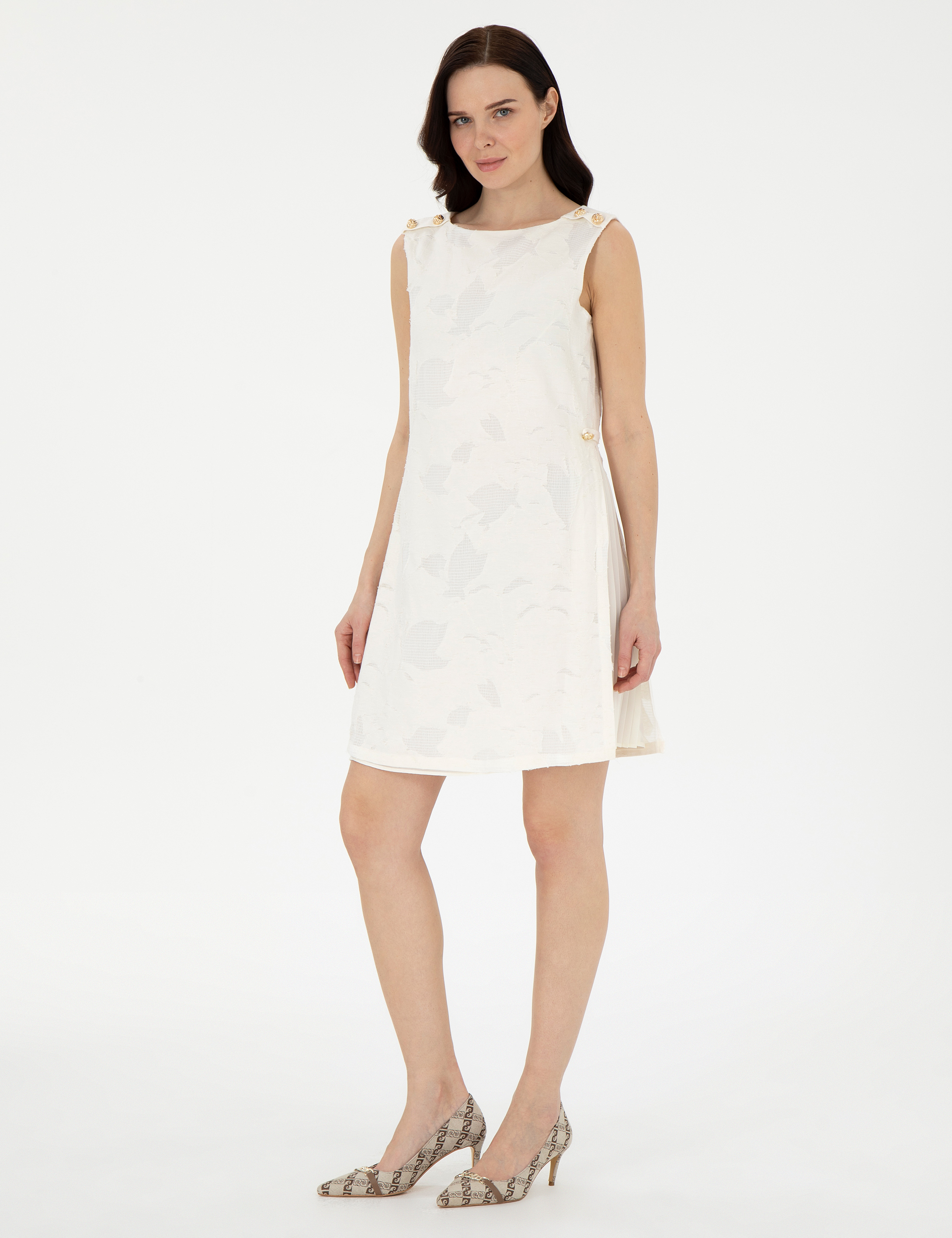 Ekru A Kesim Dokuma Elbise