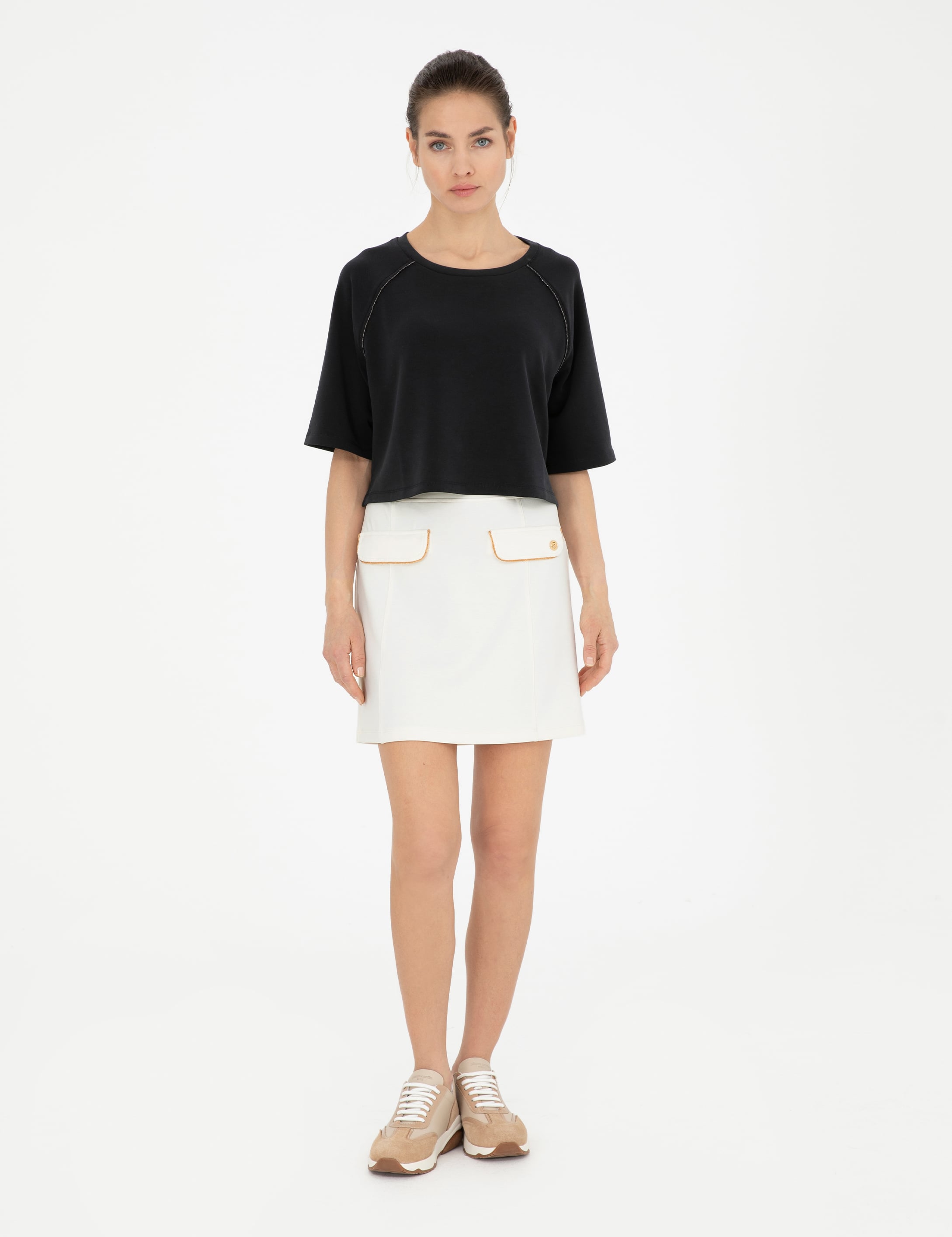 Ekru A Kesim Örme Etek