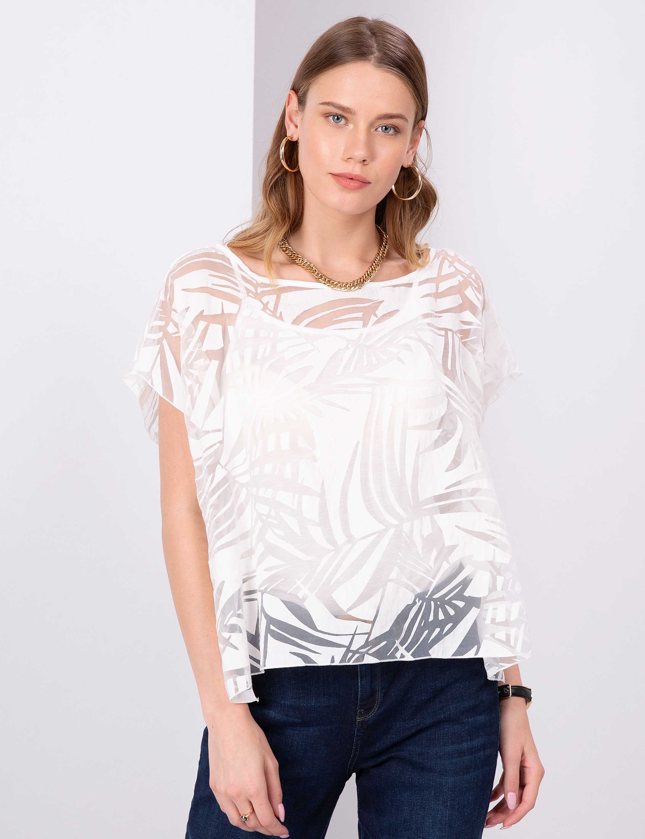 Ekru Tül Bluz