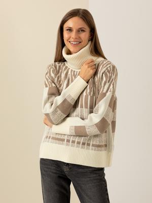 - Ekru Comfort Fit Balıkçı Yaka Kazak