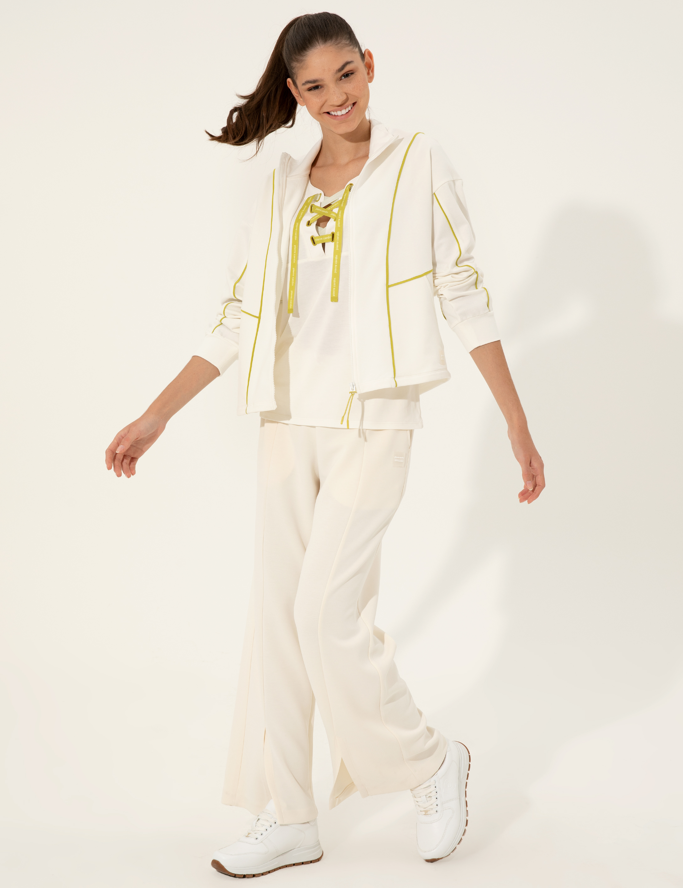 Ekru Comfort Fit Fermuarlı Sweatshirt