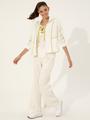 - Ekru Comfort Fit Fermuarlı Sweatshirt