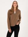 Ekru Comfort Fit Fermuarlı Polar Sweatshirt