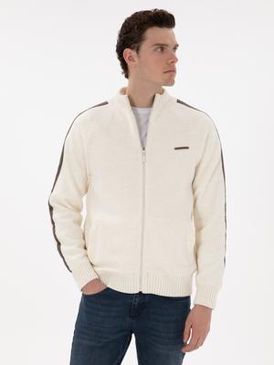 - Ekru Comfort Fit Yün Karışımlı Triko Hırka
