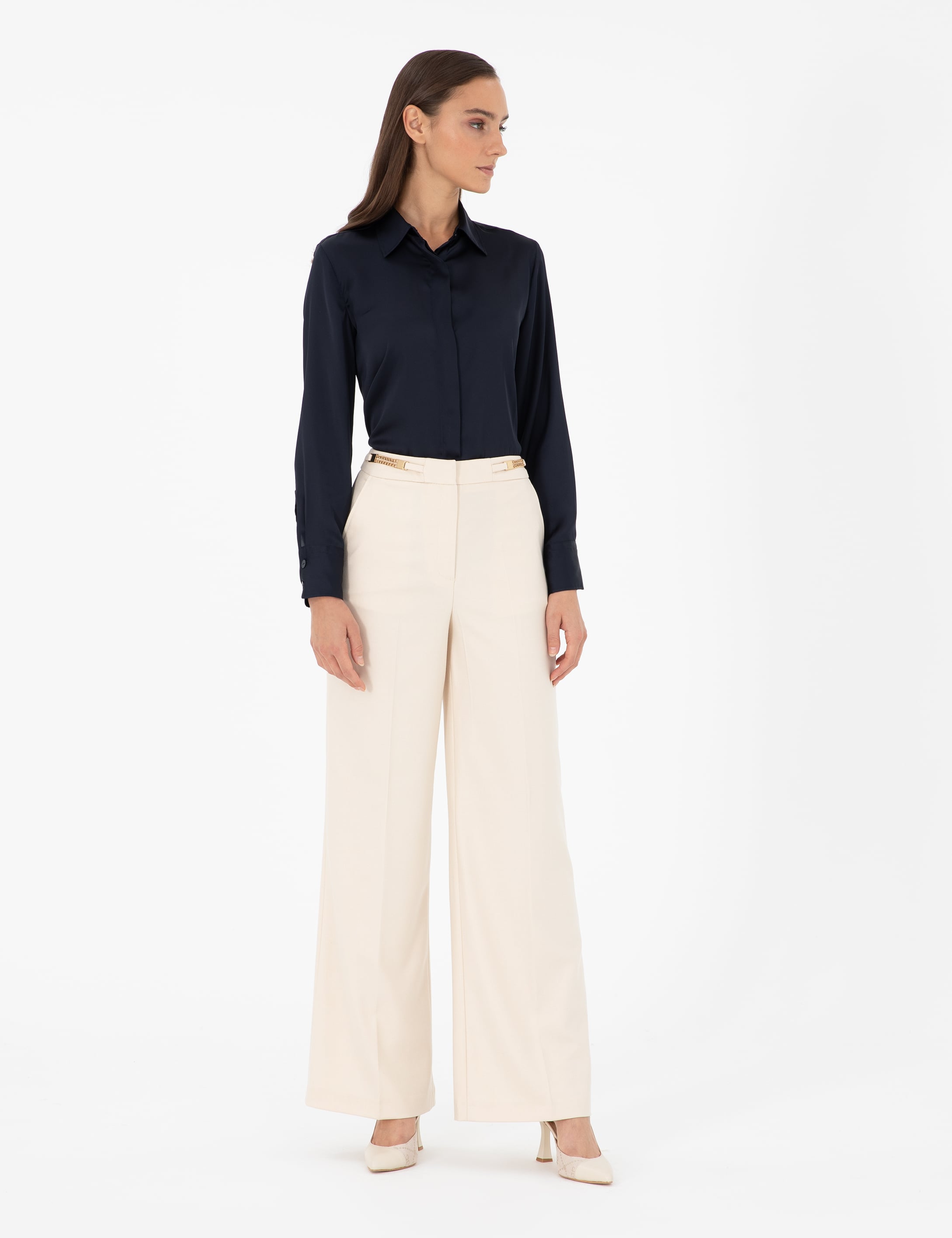 - Ekru Palazzo Kumaş Pantolon