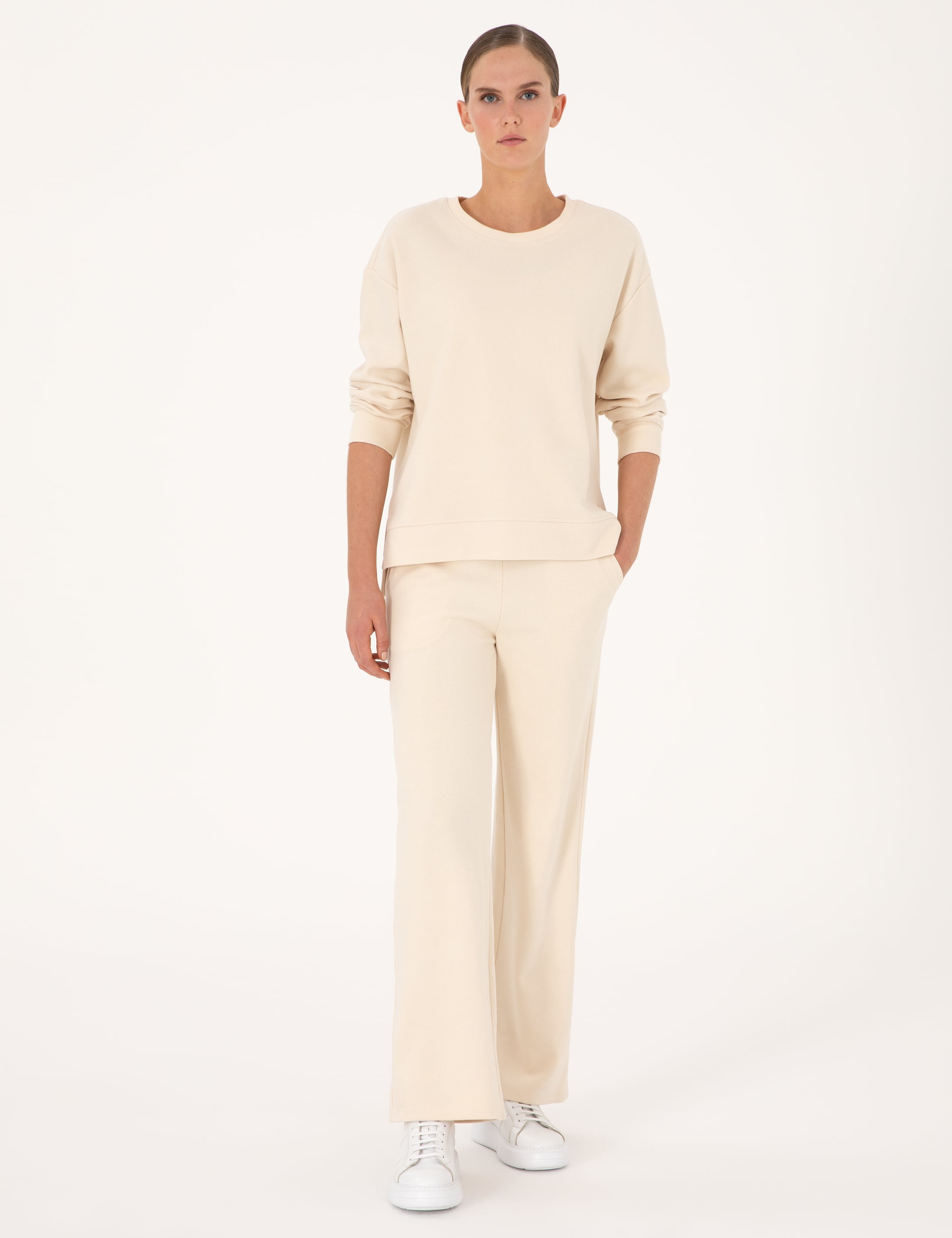 Ecru tonunun zarif ve doğal yansımasını taşıyan bu örme pantolon, yumuşacık dokusuyla gün boyu konfor sunar. Loose kesimi, vücuda baskı yapmadan rahat bir duruş sergilerken, modern ve salaş silueti sayesinde şıklığı konforla birleştirir. Ürün yapısındaki yumuşak hissiyat, hem günlük kullanımda hem de uzun süreli giyimde ekstra keyif sağlar. Doğal renginin sunduğu zamansız estetik, farklı üst parçalarla kolayca kombinlenebilmesine imkân verir. Hafif trikolar, salaş gömlekler veya basic bluzlarla uyumlu bir görünüm oluşturur. Sneaker, loafer ya da zarif bir babet ile tamamlanarak hem şehir yaşamına hem de rahat hafta sonu stillerine kolayca uyarlanabilir. Zamansız rengi ve rahat kesimiyle, sade şıklığın anahtar parçası olmaya adaydır.