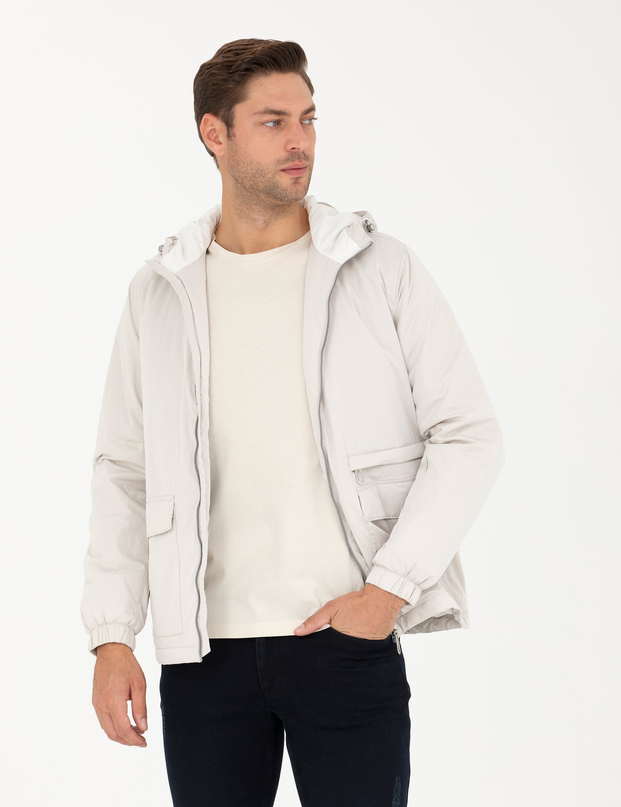 Ekru Kapişonlu Baharlık Mevsimlik Mont