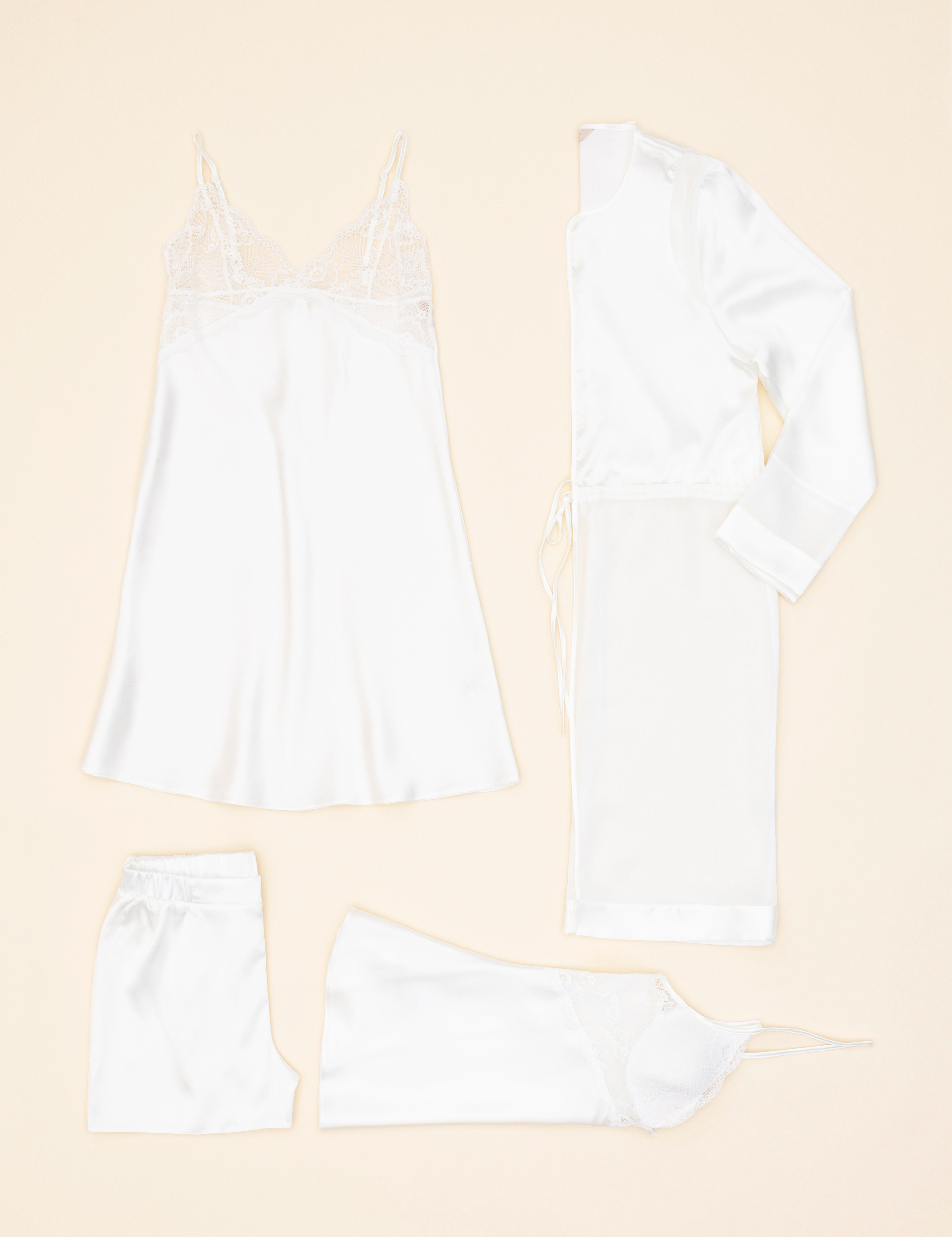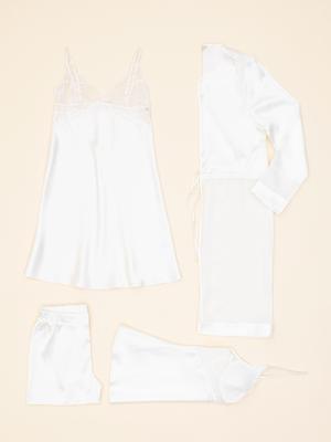 Pierre Cardin çeyiz seti 4 parçadan oluşmaktadır. Ürün gönderimi kutulu yapılmaktadır. Kutu içeriğinde Gecelik, Sabahlık, Babydoll ve Şort bulunmaktadır.