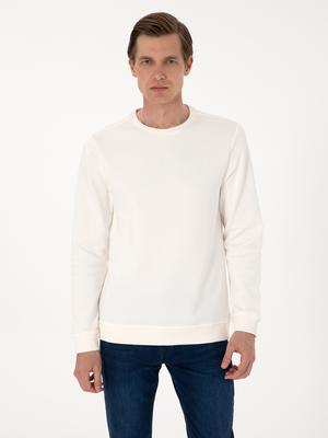 Ekru 3 İplik Regular Fit Bisiklet Yaka Basic Sweatshirt