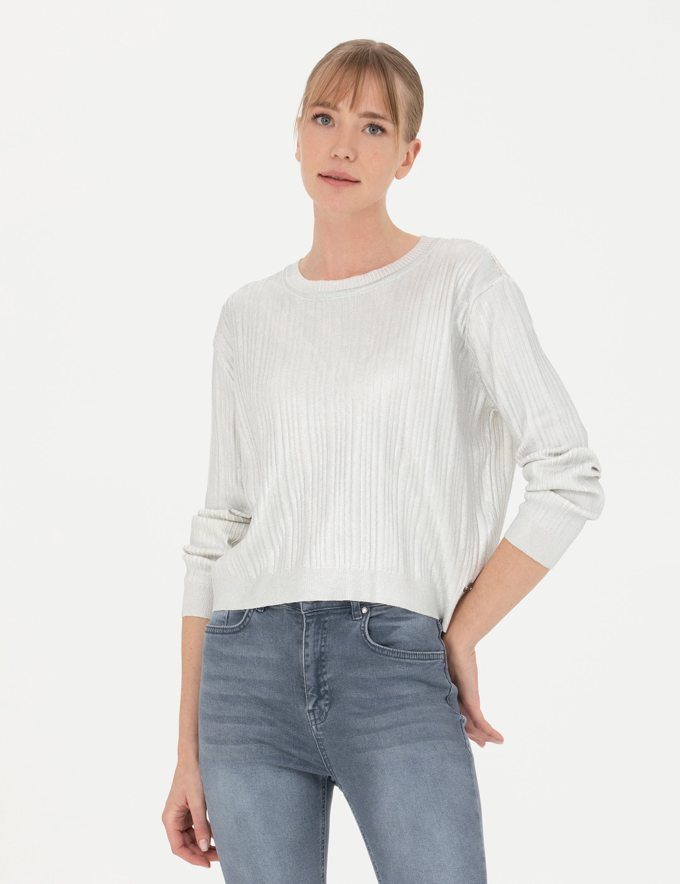- Ekru Regular Fit Bisiklet Yaka Kazak
