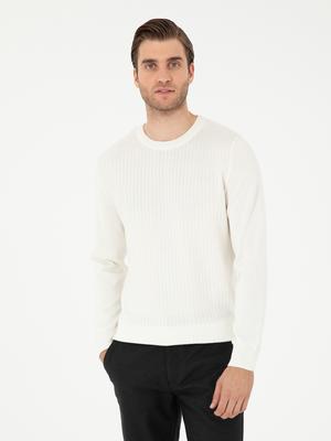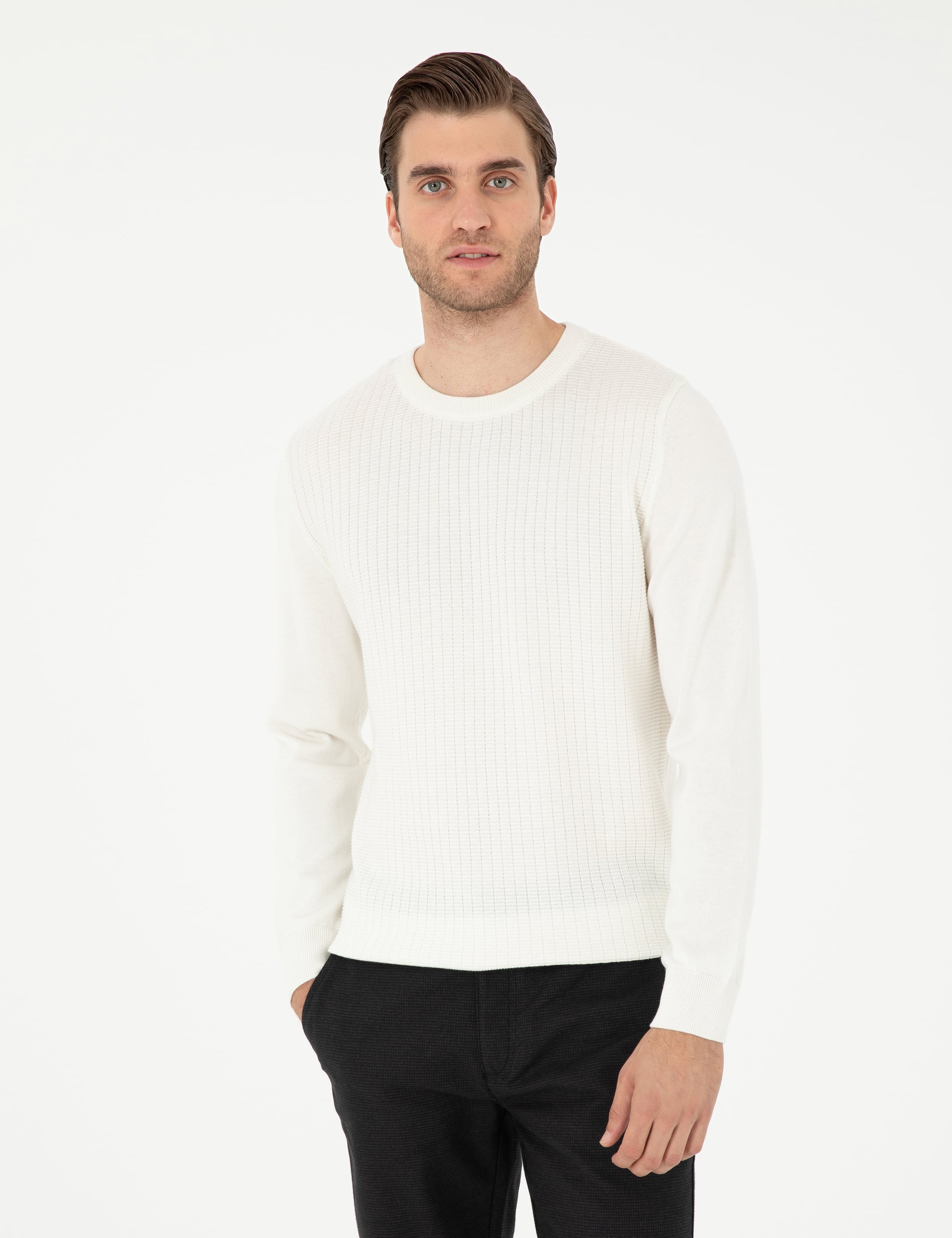 Ekru Regular Fit Bisiklet Yaka Yün Karışımlı Triko Kazak
