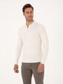 - Ekru Regular Fit Polo Yaka Fermuarlı Triko Kazak
