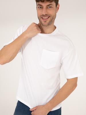 - Ekru Regular Fit Düz Cepli Bisiklet Yaka Tişört