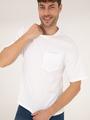 Ekru Regular Fit Düz Cepli Bisiklet Yaka Tişört