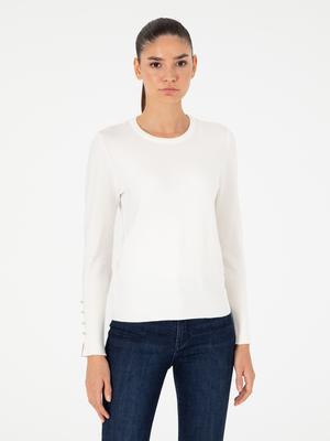 - Ekru Slim Fit Bisiklet Yaka Basic Kazak