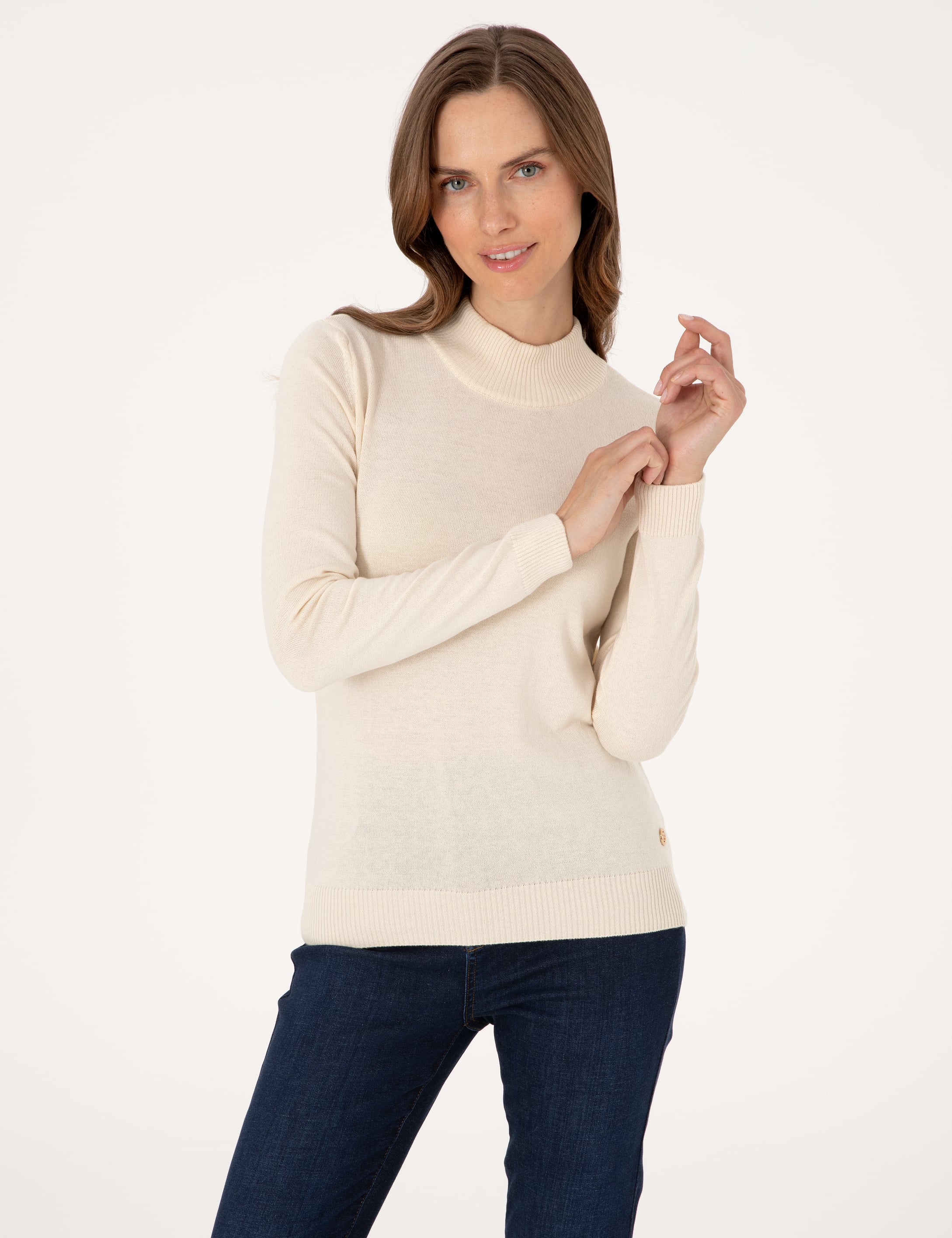 Ekru Slim Fit Yarım Balıkçı Basic Kazak