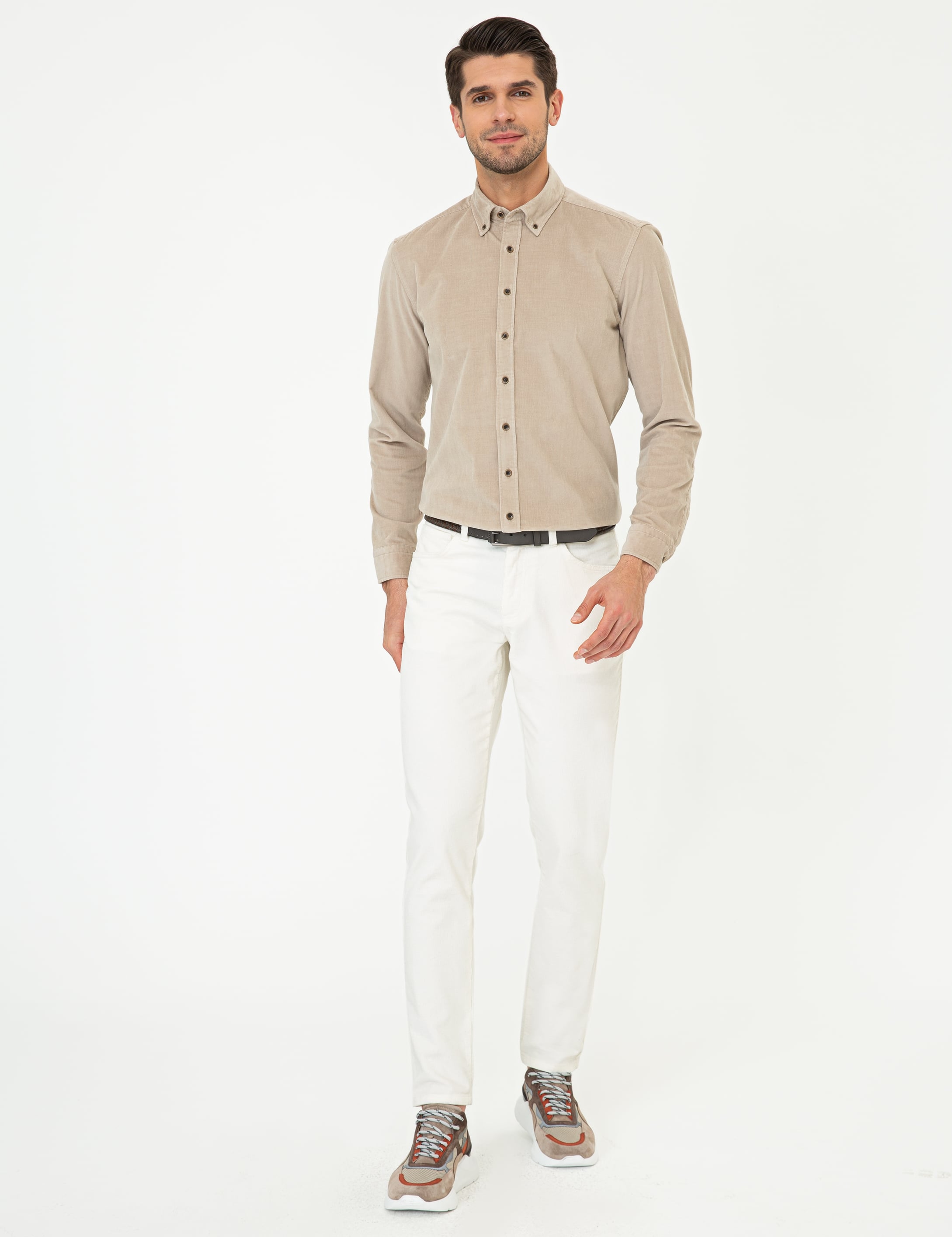 Ekru Slim Fit Kadife Kanvas Pantolon