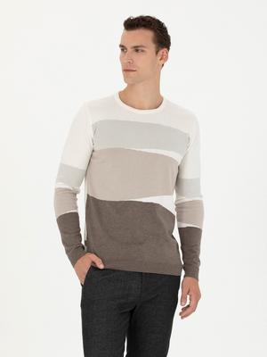 - Ekru Slim Fit Bisiklet Yaka Triko Kazak