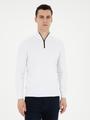 - Ekru Slim Fit Fermuarlı Dik Yaka Triko Kazak