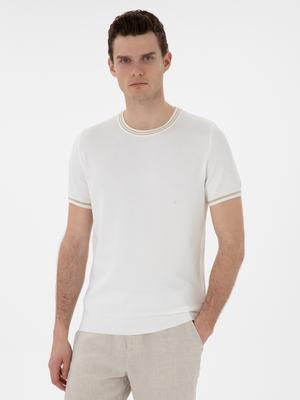 Ekru Slim Fit Bisiklet Yaka Triko Tişört