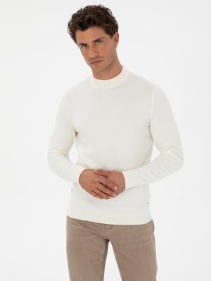 Ekru Slim Fit Çeyrek Yaka Triko Kazak