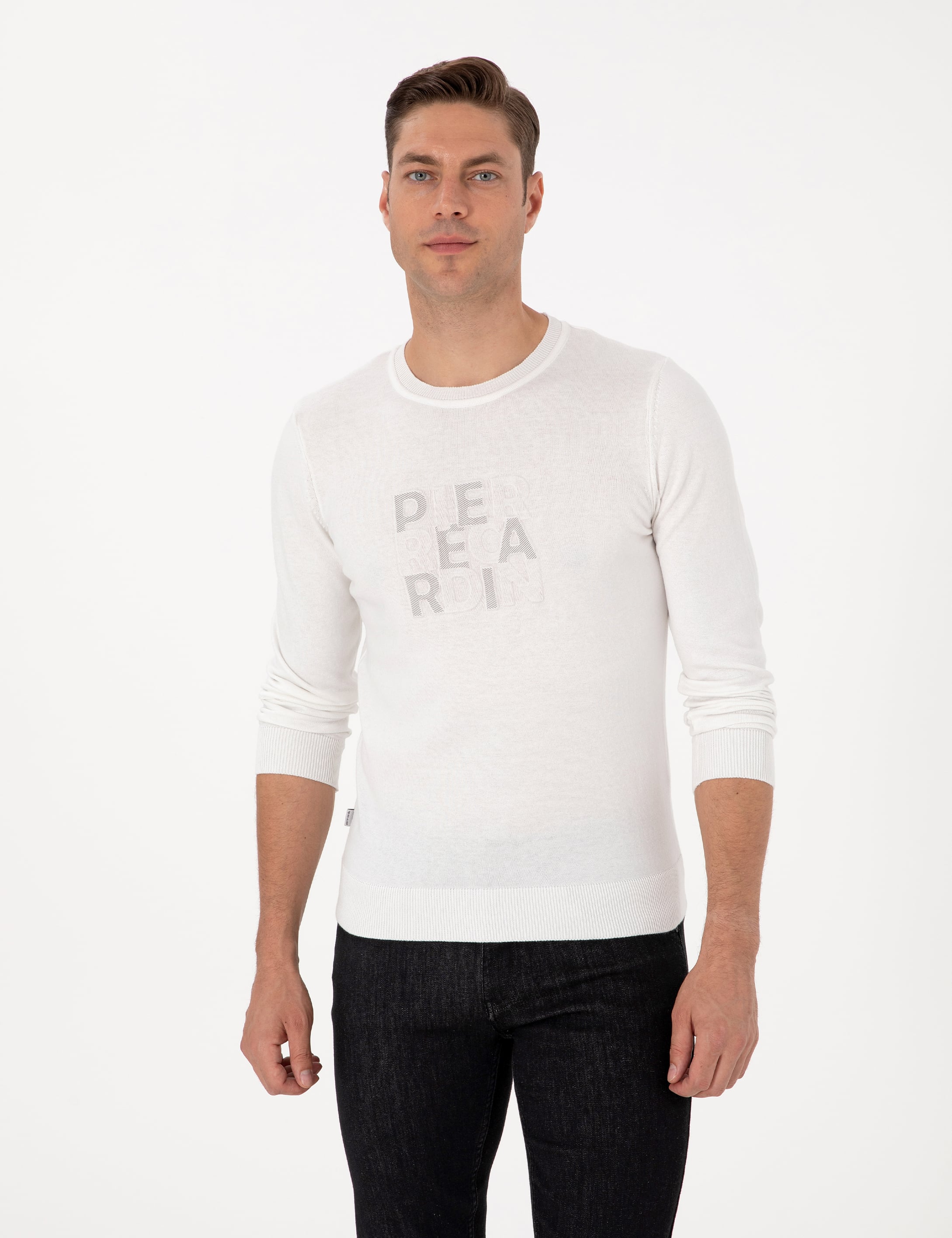 - Ekru Slim Fit Bisiklet Yaka Triko Kazak
