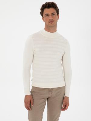 Ekru Slim Fit Çeyrek Yaka Triko Kazak