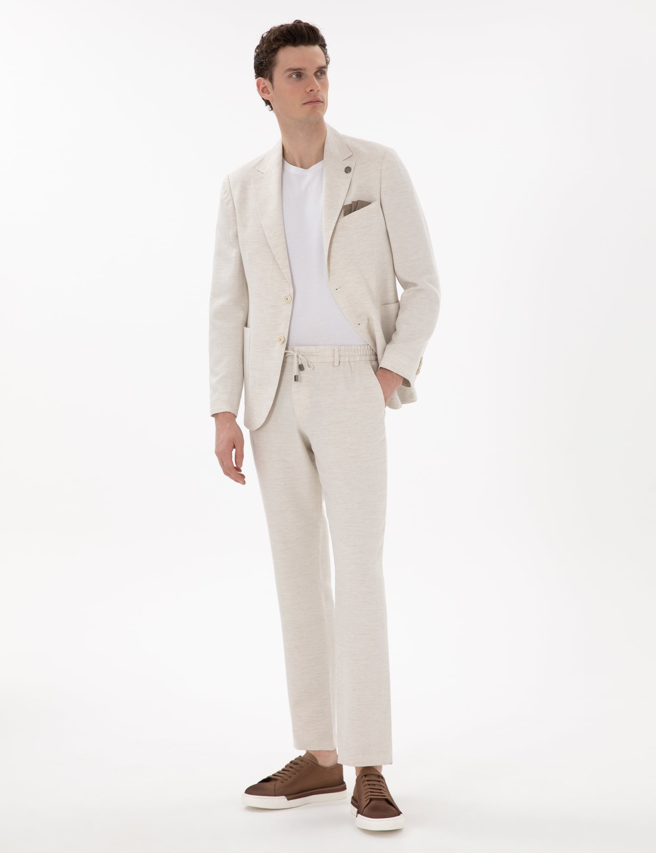 - Ekru Slim Fit Keten Karışımlı Takım Elbise