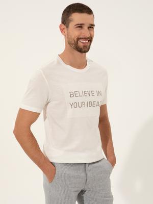 - Ekru Slim Fit Bisiklet Yaka Tişört