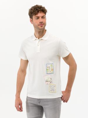 - Ekru Baskılı Bisiklet Yaka Tişört