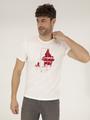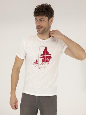 - Ekru Slim Fit Baskılı Bisiklet Yaka Tişört