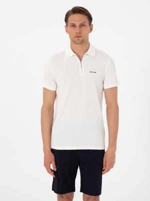 Ekru Slim Fit Örme Dokulu Polo Yaka Tişört